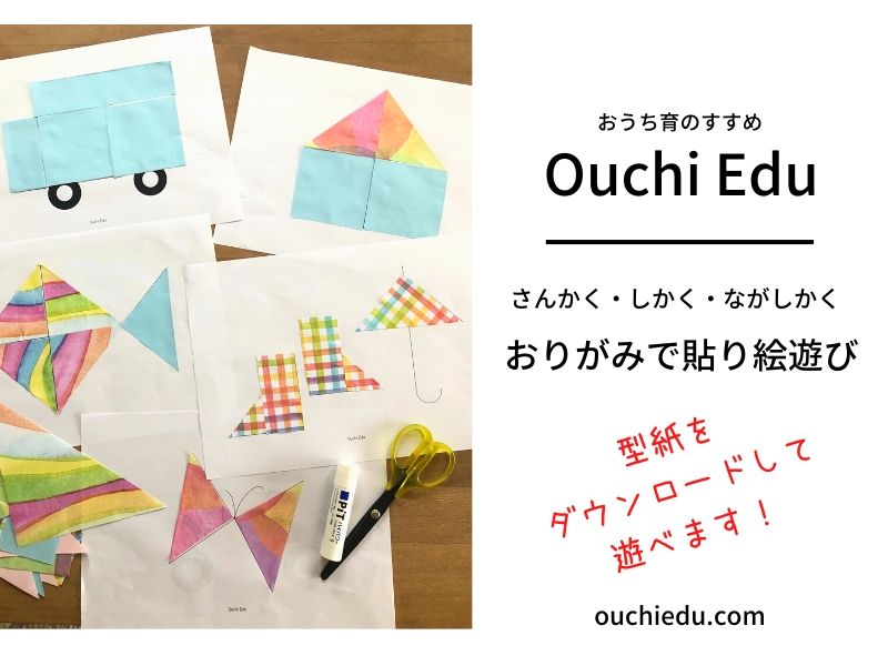 おりがみで知育工作 型紙をダウンロードして貼り絵あそびouchiedu。