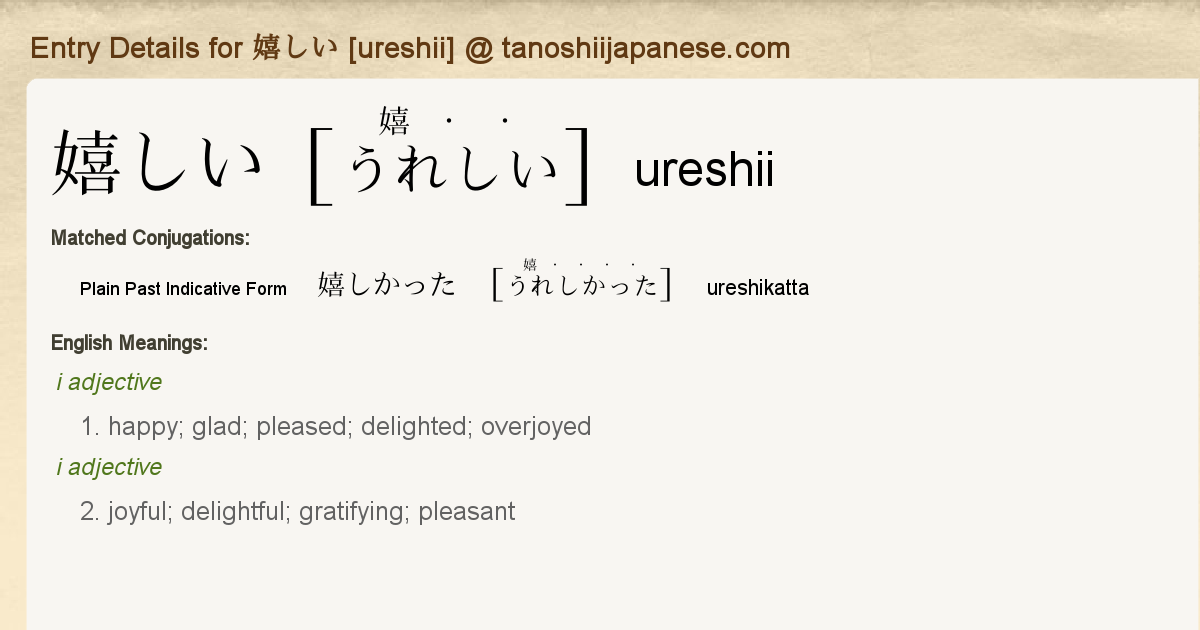 Entry Details for 嬉しかったureshikatta- Tanoshii Japanese。