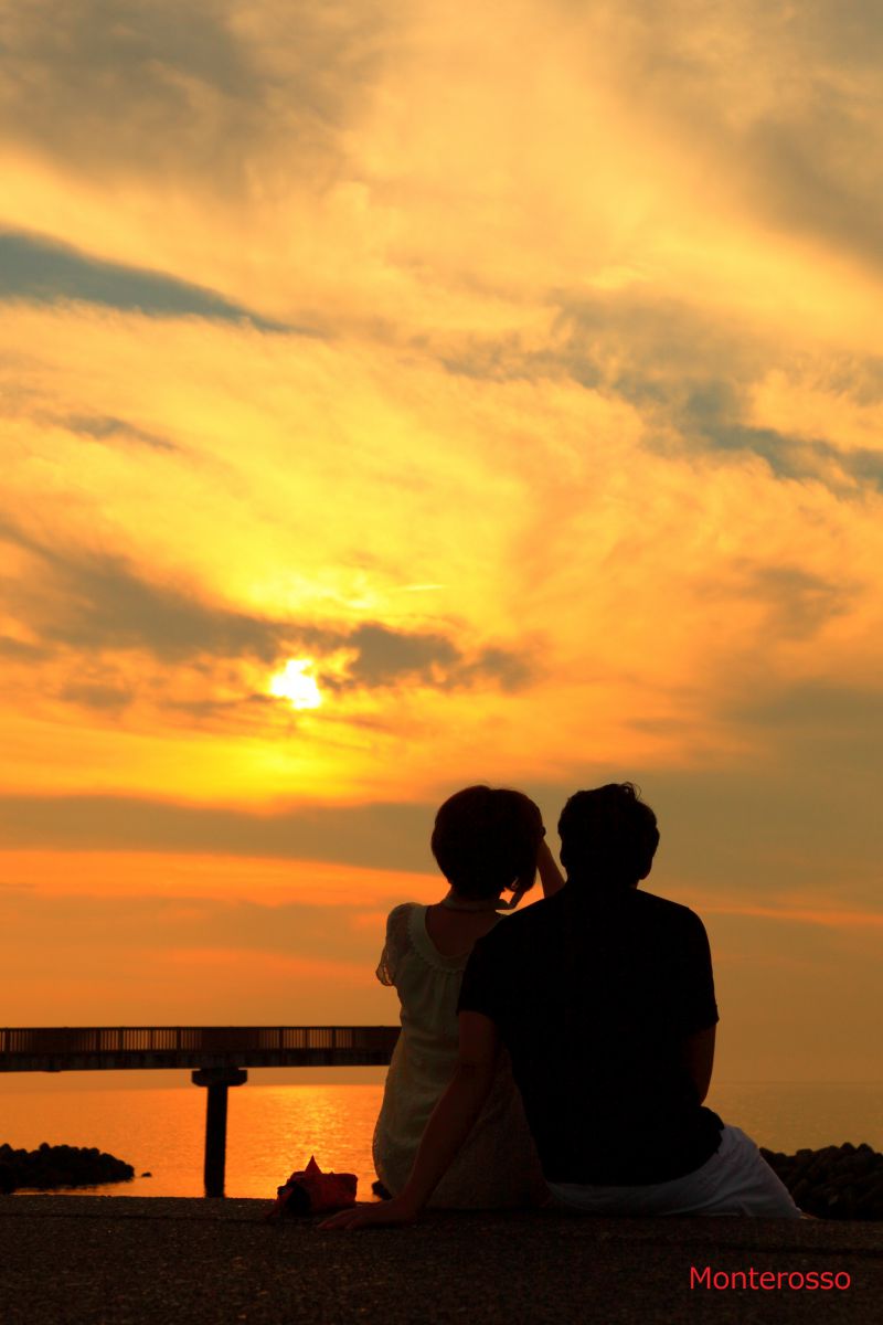 フリー写真一緒に夕日を眺めているカップルの後ろ姿でアハ体験GAHAG著作権フリー写真・イラスト素材集 - GAHAG著作権フリー写真・イラスト素材集。