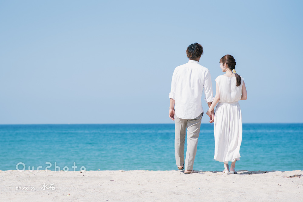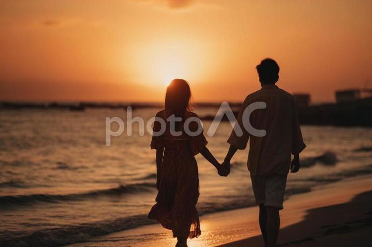 海辺で手をつなぐカップルの後ろ姿151862454 の写真素材 - アフロ。