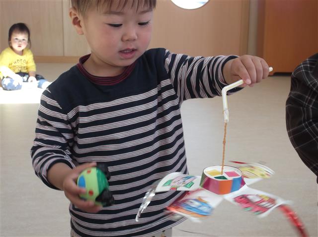 5 16 0歳児 手作りおもちゃで つまむ,引っ張る,にぎる 指先の発達のためにらいらっく保育園 常陸太田市の保育園社会福祉法人月居会。