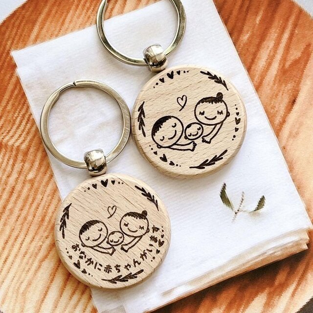 裏面文字入れ無料☆木製マタニティマーク☆ ナチュラルデザイン プレママ 赤ちゃん キーリングiichi日々の暮らしを心地よくするハンドメイドやアンティークのマーケットプレイス。