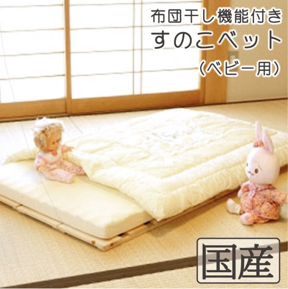 赤ちゃんの寝汗・花粉対策にも国産品 国産ひのき製ベビー用 布団干し機能付 すのこベッド組立不要秋を爽やかに♪雨 湿気 カビ 汗かきダニ対策 めいじ屋 子供 スノコ 赤ちゃん すのこ すのこマット 折りたたみベッド 日本製 桧すのこ 木製 桧 檜 ベビーベッド。