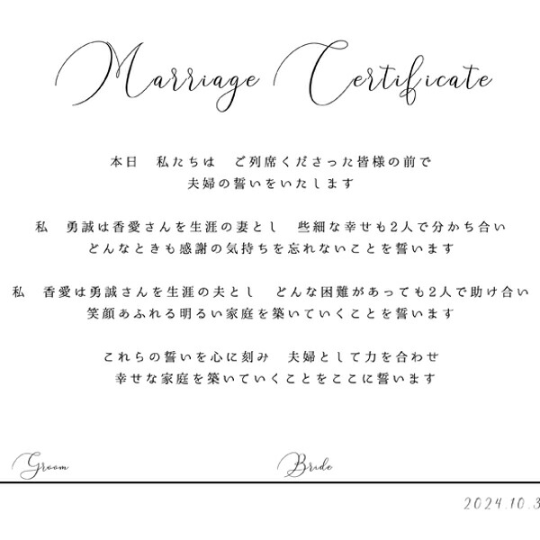 刻印代込 「結婚誓約書 A4サイズ」色あせることのない誓いの言葉を木製のボードに刻む結婚証明書おしゃれな北欧風木製雑貨・贈り物・名入れギフトHacoaオンラインストア。