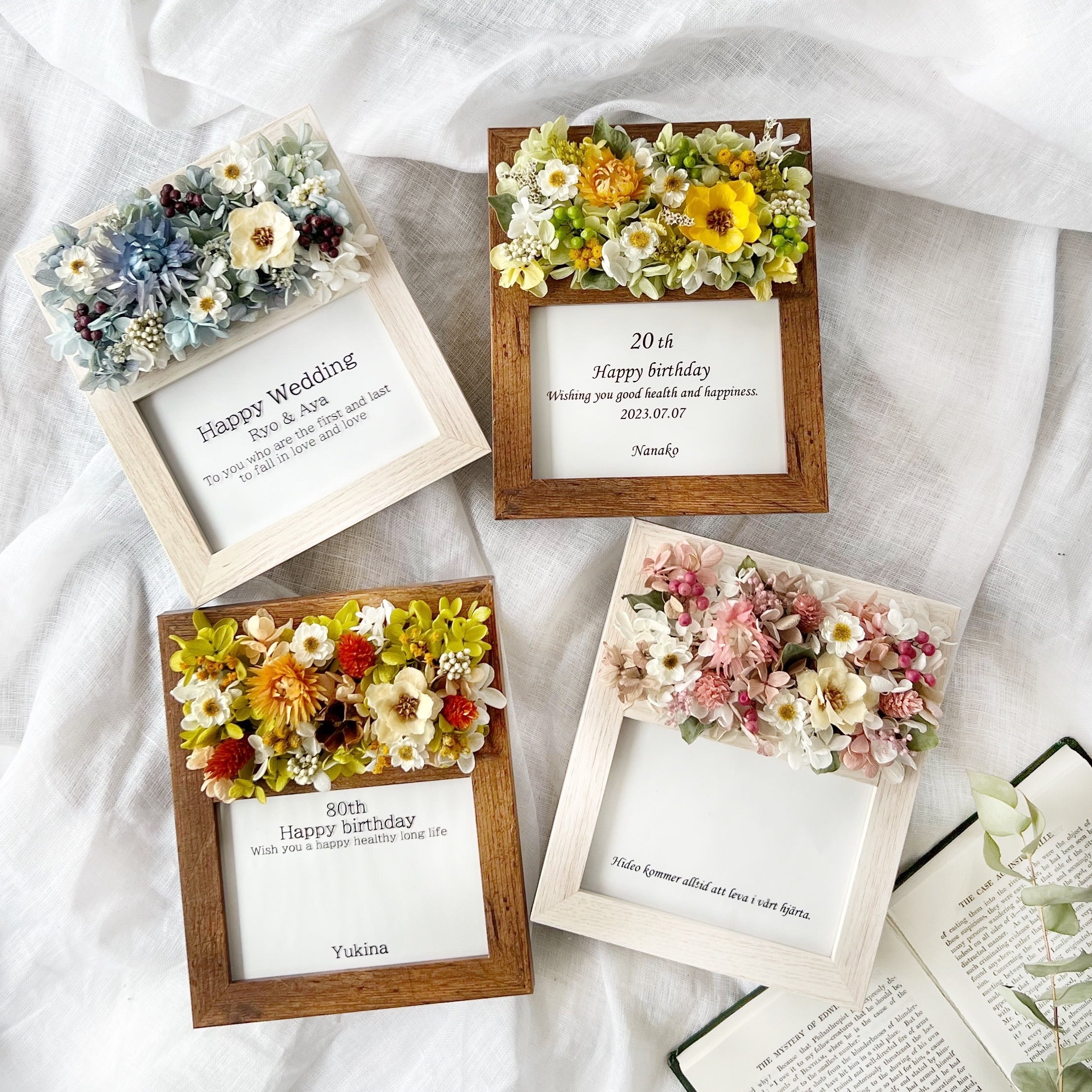 楽天市場筆文字作家 直筆 結婚祝い 10周年 結婚記念日 ウェルカムボード ウェディング 新築祝い 紙婚式 誕生日 プレゼント 名前入り 名前詩名前ポエム 誕生日 女性 夫婦 家族 妻 彼女 花ギフト アーティフィシャルフラワー 名入れ造花 フラワー額 A4 ホワイト 1。