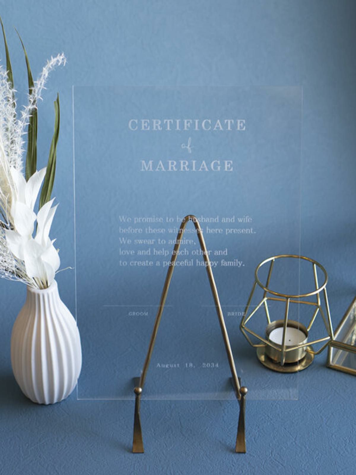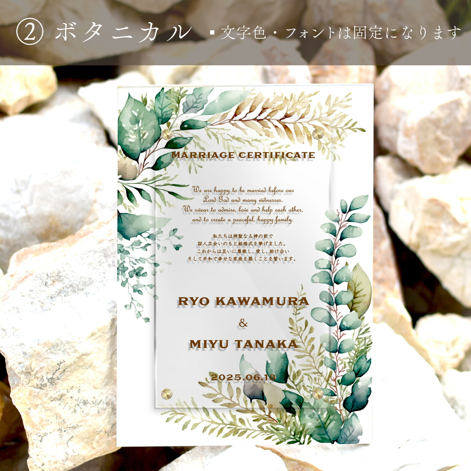 フォトパネル 結婚証明書デザインアクリルフレーム A4横 アクリル2枚重ね プリント印刷 名入れ加工付 専用スタンドあり Z38 💎💎💎SOLD OUT , , 💍結婚証明書,ゲスト参加型結婚証明書 , , フレームサイズA4, フレームカラーシルバー,新郎新婦パーツ。