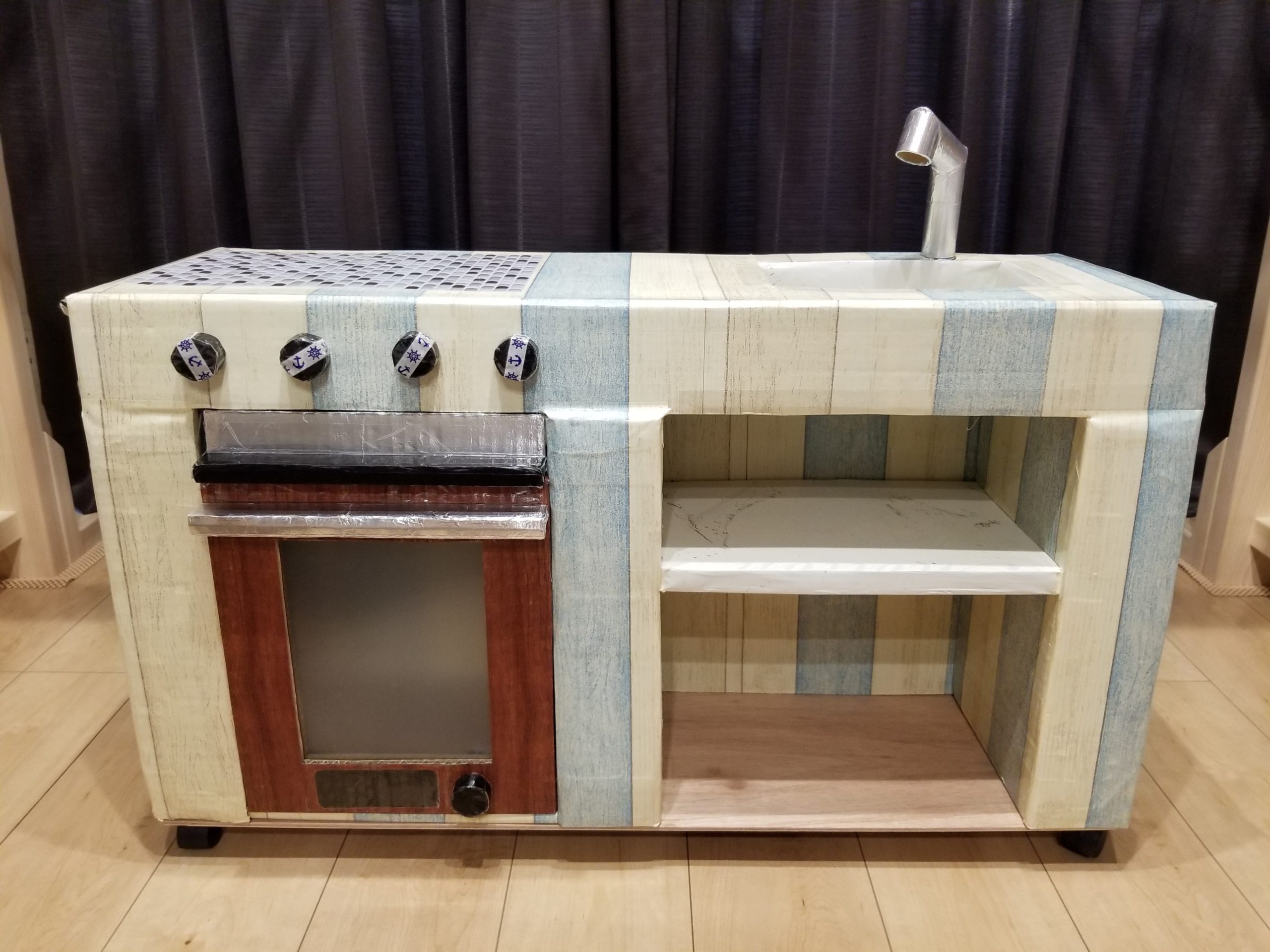 段ボールに見えない!本格手作りままごとキッチンがクオリティ高すぎ。