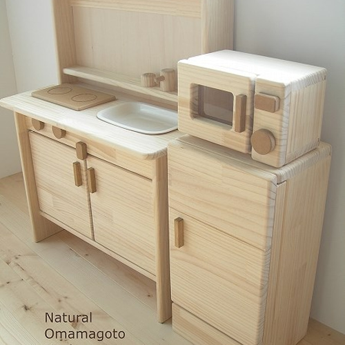 手作り木製ままごとキッチン KHM 完成品です! ・無塗装・ホーローシンクsosion夢工場。