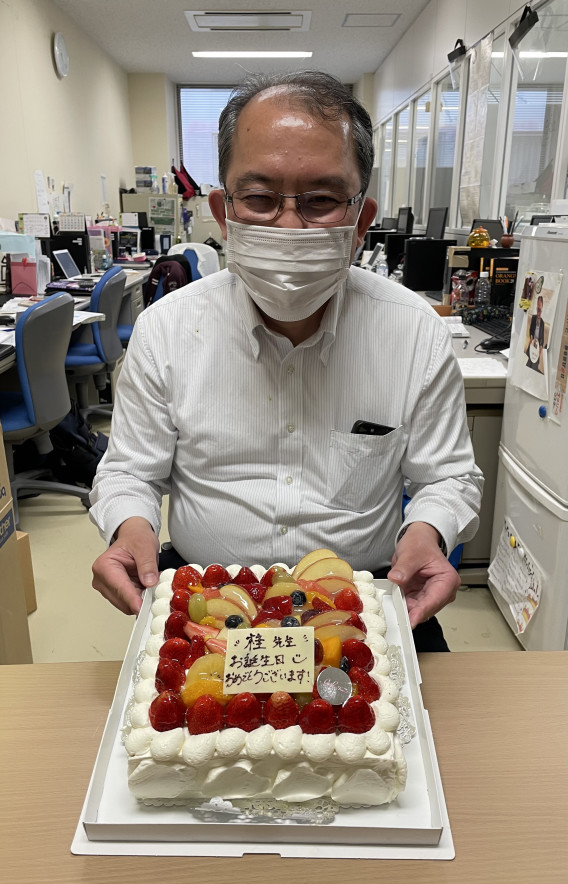 本日6月30日は坂田教授のお誕生日です👏 「またひとつ年をとります。がんばります」とのこと☺️✨ 坂田先生 がお元気でご活躍されることを願ってケーキでお祝いです🎂。