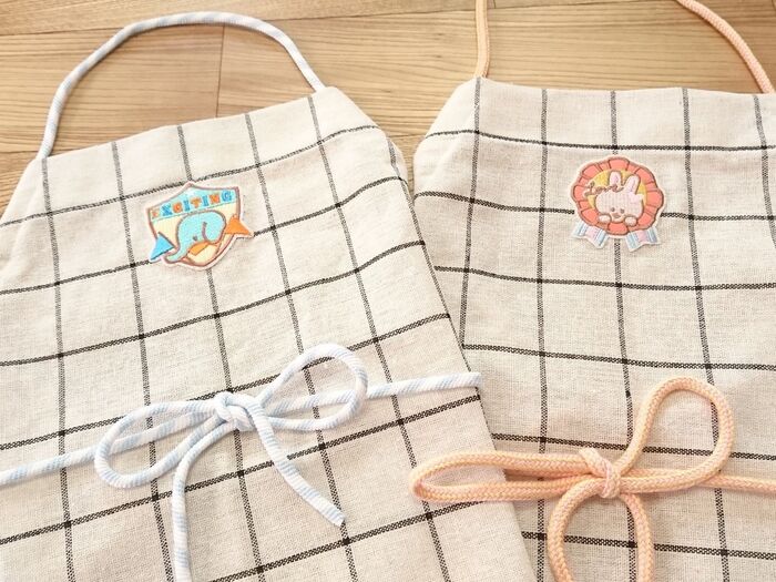 100均カフェカーテンでエプロン2枚!すべて100均商品で子供用エプロンハンドメイドの作り方・アイデア暮らしニスタ。