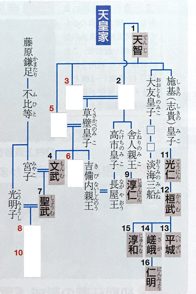 天智天皇 天武天皇 藤原氏 家系図 人物相関図を把握して、 人と人との関係性を理解しよう👍️日本史歴史歴女高校受験大学受験船堀船堀塾トライアングルオンライン授業家系図飛鳥時代奈良時代相関図人物相関図天皇夢夢を叶えるノート。