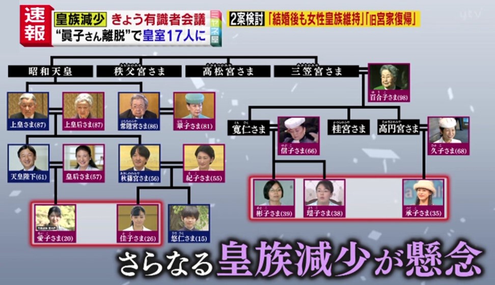 情報ライブ ミヤネ屋記事 独自解説 人数減少で多忙な公務 国会で始まった“皇族減少対策”の議論、「2つの案」が出されるものの課題山積 男系天皇・女性 天皇・女系天皇については「その議論は時期尚早だということ。いわば、先送り」と専門家が指摘する理由読売テレビ。