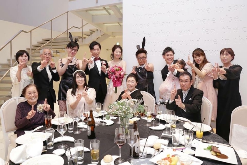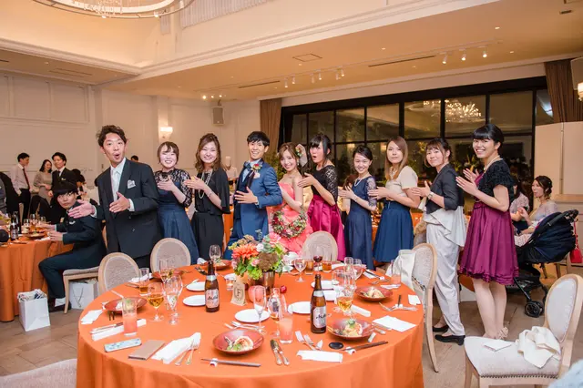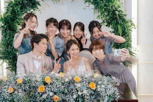 高砂・メインテーブルでゲストと一緒に撮る時のポーズ集marry マリー。