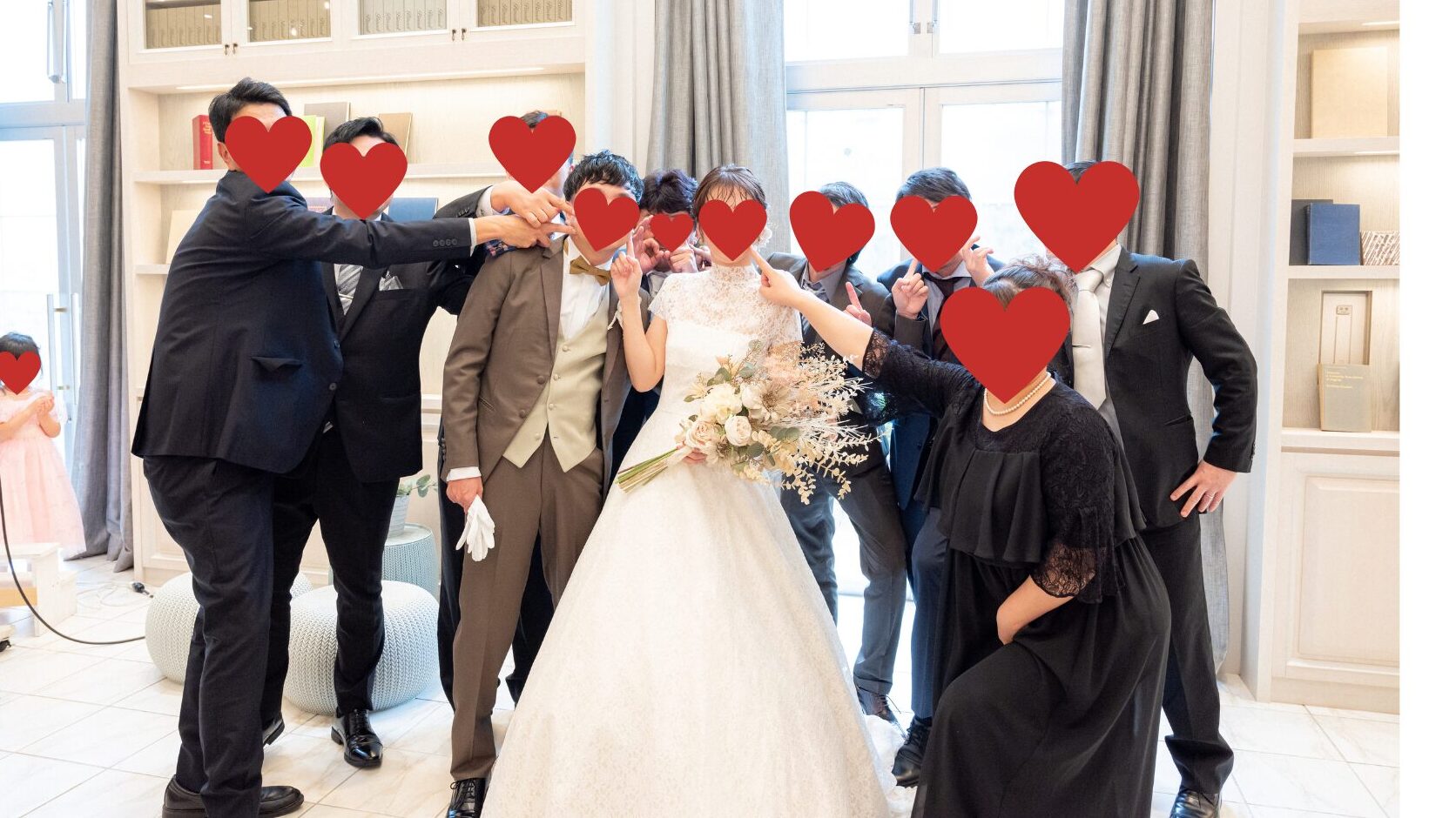 結婚式でゲストとの集合写真を素敵に残すアイディア集!撮影小物も紹介。