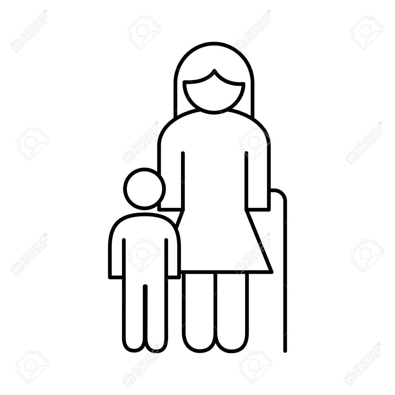 孫ラインスタイルアイコンベクトルイラストデザインと家族の祖母の図のイラスト素材・ベクター Image 153748881。