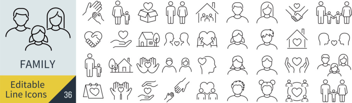 家族ライン アイコン セット - アイコンのベクターアート素材や画像を多数ご用意 - アイコン, 年配の男性, 子供 - iStock。
