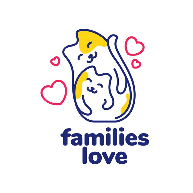 子猫猫恋人の心家族ペット ライン アート抽象的なカラフルなモダンなロゴ ベクトル アイコン イラストPremiumベクトル素材。