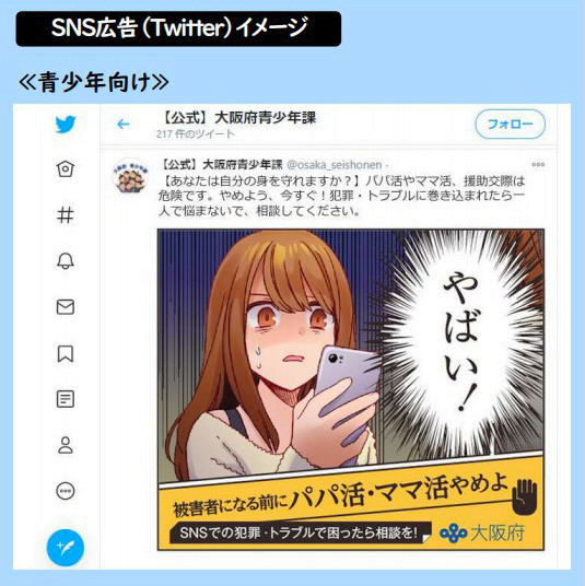 パパ活、ママ活 検索すると「児童買春は犯罪」 大阪府大阪府 :朝日新聞。
