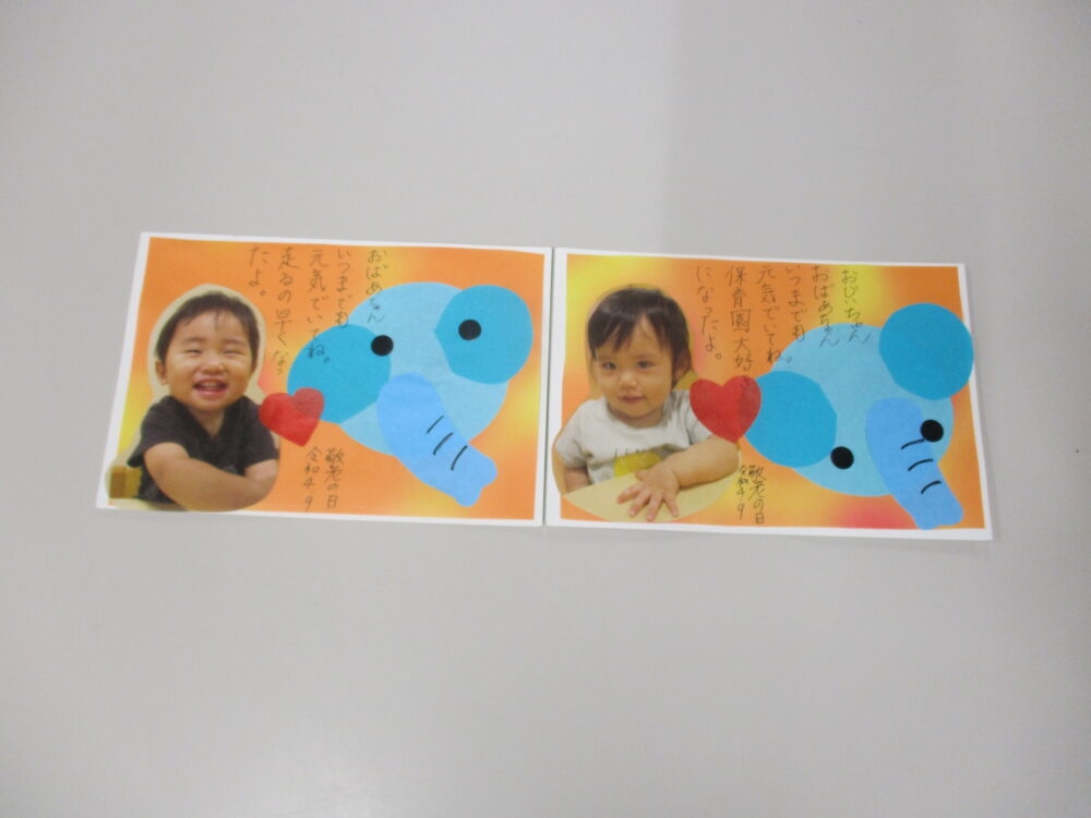敬老の日のはがき。じきょう日誌慈教保育園-じきょうほいくえん。