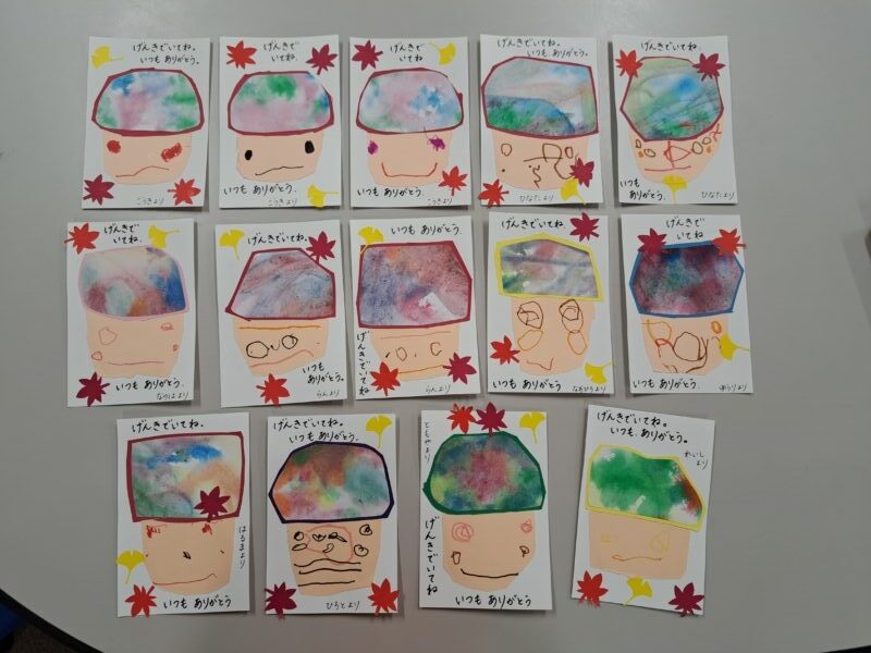 9 3 敬老の日のハガキ製作!虹ぐみやえもん幼稚学園。