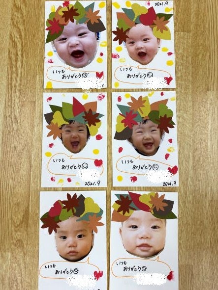 乳児クラス敬老の日のハガキ製作をしました✨ 子どもたちの気持ちがたくさん詰まっています☺️ おじいちゃん、おばあちゃん いつまでも元気でいてね😊すこやか認定こども園敬老の日乳児クラス0歳児1歳児2歳児。