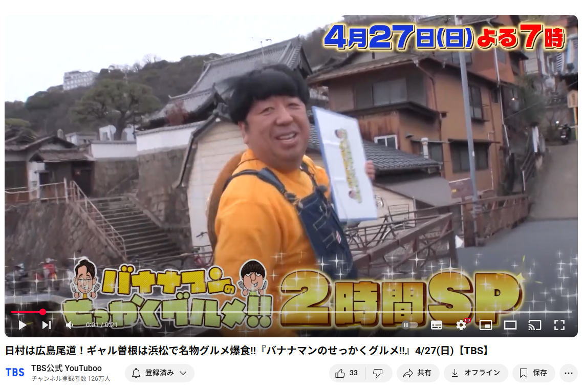 バナナマンのせっかくグルメ、尾道に日村がやってきた!うどん・ラーメン・お好み焼きを食す。