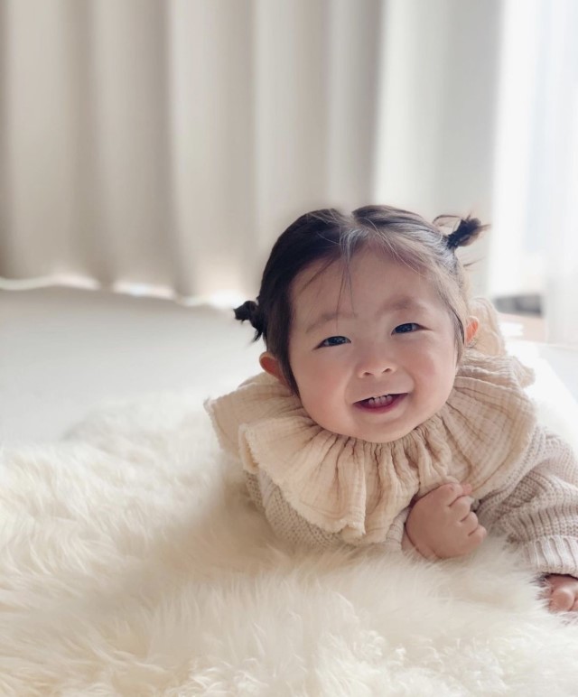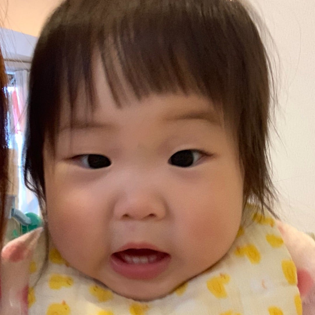 オン眉赤ちゃん 初めての前髪カットを失敗して反省するママですが、「むしろ成功」と言いたい可愛さ♡。