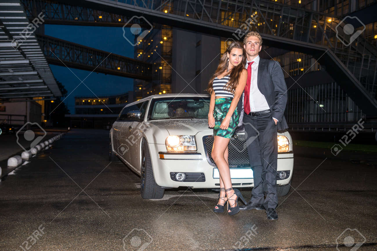 夜の贅沢な車の前に立ってエレガントなカップルの写真素材・画像素材 Image 63694943。