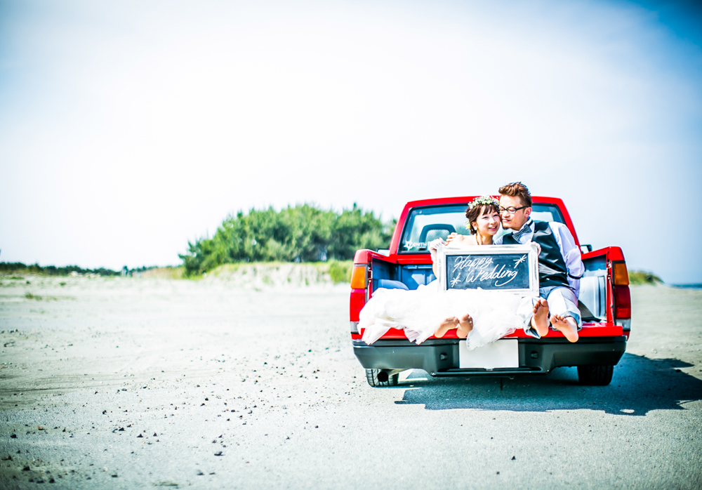 撮影もとても楽しかった」ビーチで愛車と一緒にカップルフォトの撮影OurPhoto アワーフォト。