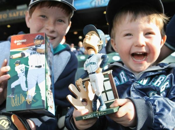 ◎イチロー人形 プレゼントされたマリナー :MLB2008―大リーグ写真特集:時事ドットコム。