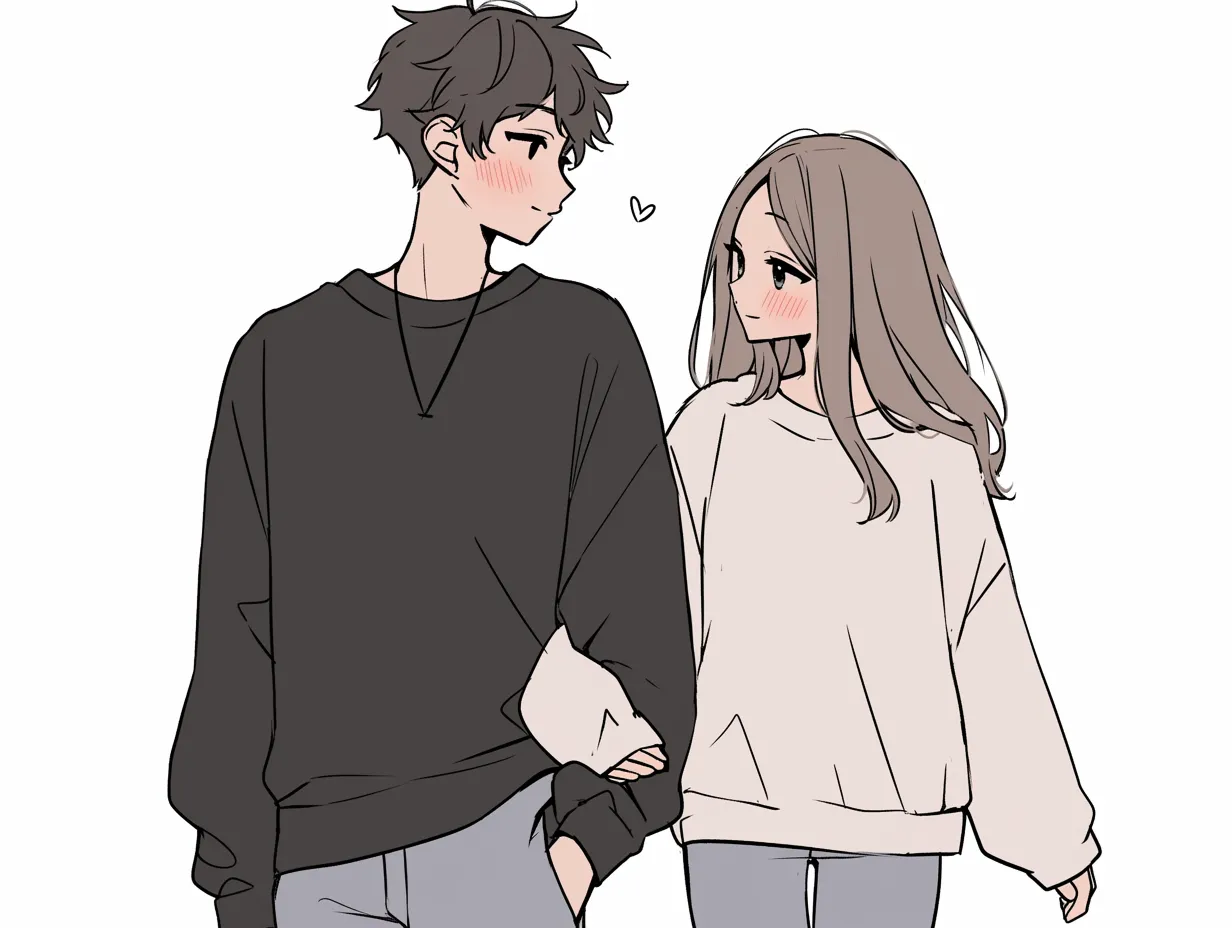 シンプルコーデで寄り添う腕組みカップルイラスト・フリー素材なら「シンテリ」。
