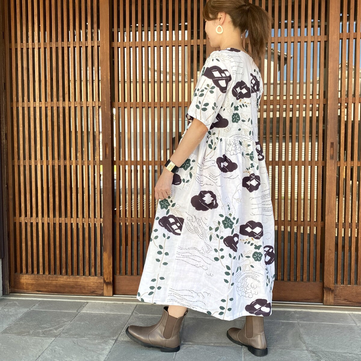 浴衣リメイクワンピース 白 前ファスナー – こっとんコットン。