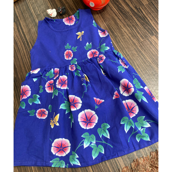 浴衣リメイク 子供ワンピース ノースリーブワンピース 花柄 110サイズ - メルカリ。