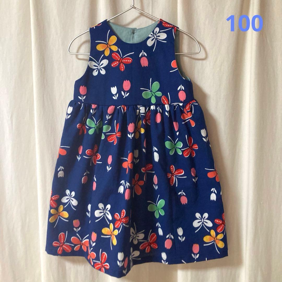 浴衣リメイク 子供ワンピース ノースリーブワンピース 蝶々とチューリップ 100 - メルカリ。