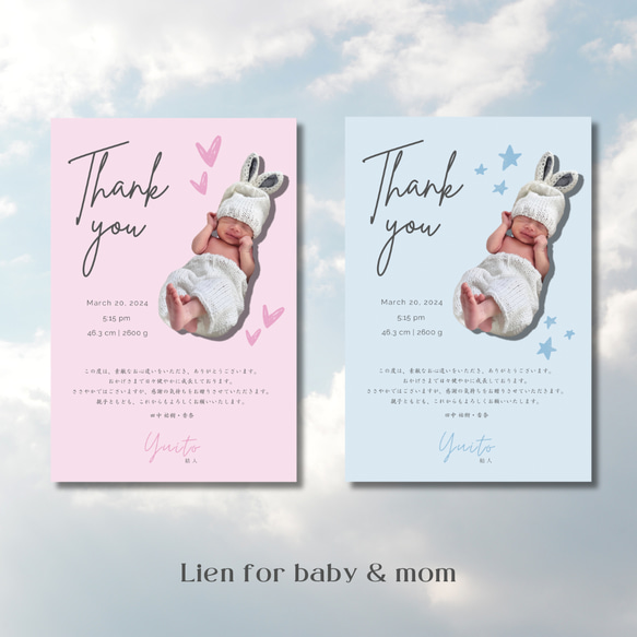 即日対応◎ 出産内祝い・ご挨拶に 名入れ 写真入れ 切り抜き パステルカラー マーメイド紙 角丸 ハガキ 雑貨・その他 Lien for baby &mom 通販 17565657Creema クリーマ。