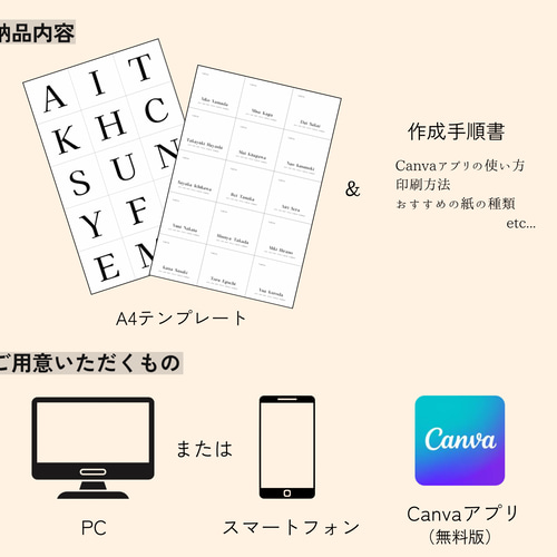 スマホで簡単🔰 席札テンプレート Canva用 Simple A おしゃれ 自作 - 砂月ウェディングアイテム販売minnebyGMOペパボ 国内最大級のハンドメイド・手作り通販サイト。