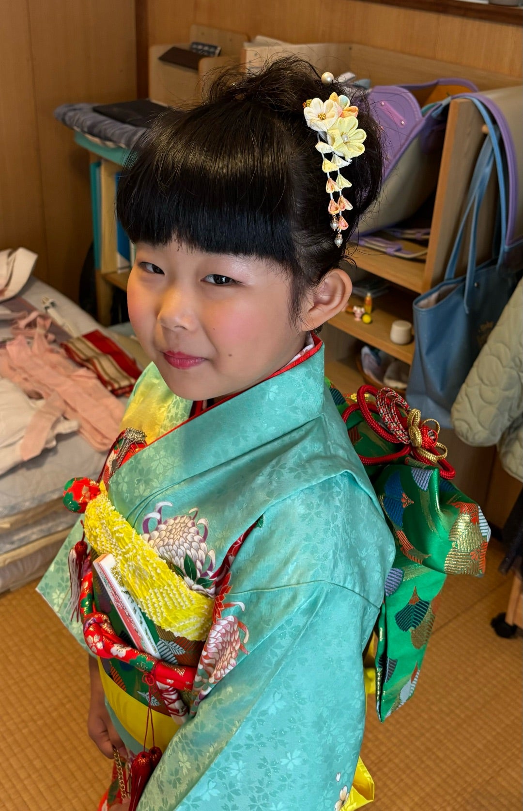 七五三 7歳のお嬢さん オン眉に合わせて少し個性を出し アイラインに白と茶を入れてみました 笑った表情が何とも可愛い✨753撮影753ヘア753前撮り753753撮影スタジオ大和田写真館ohwadaphotstudio。