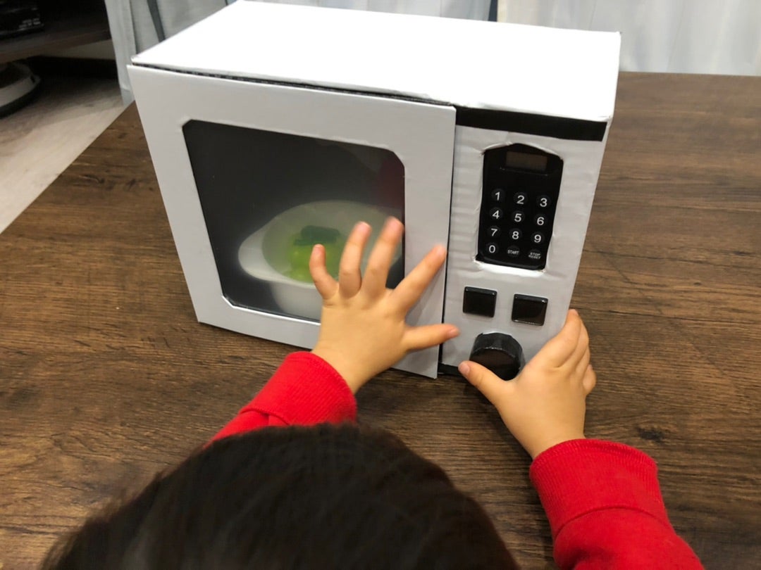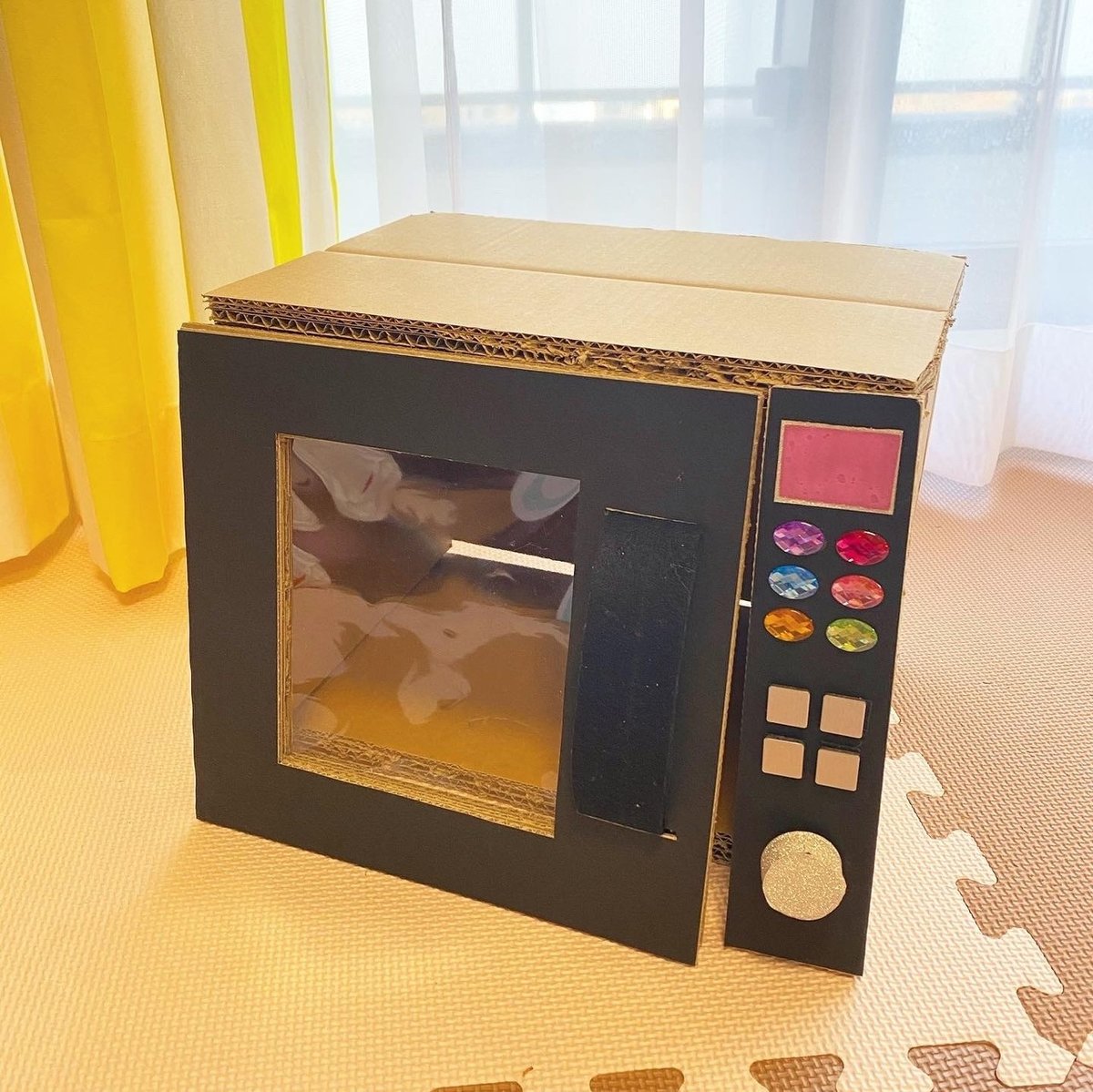 ままごと用「段ボールで電子レンジ」簡単&安い作り方 100均・空き箱も活用kosodate LIFE 子育てライフ。