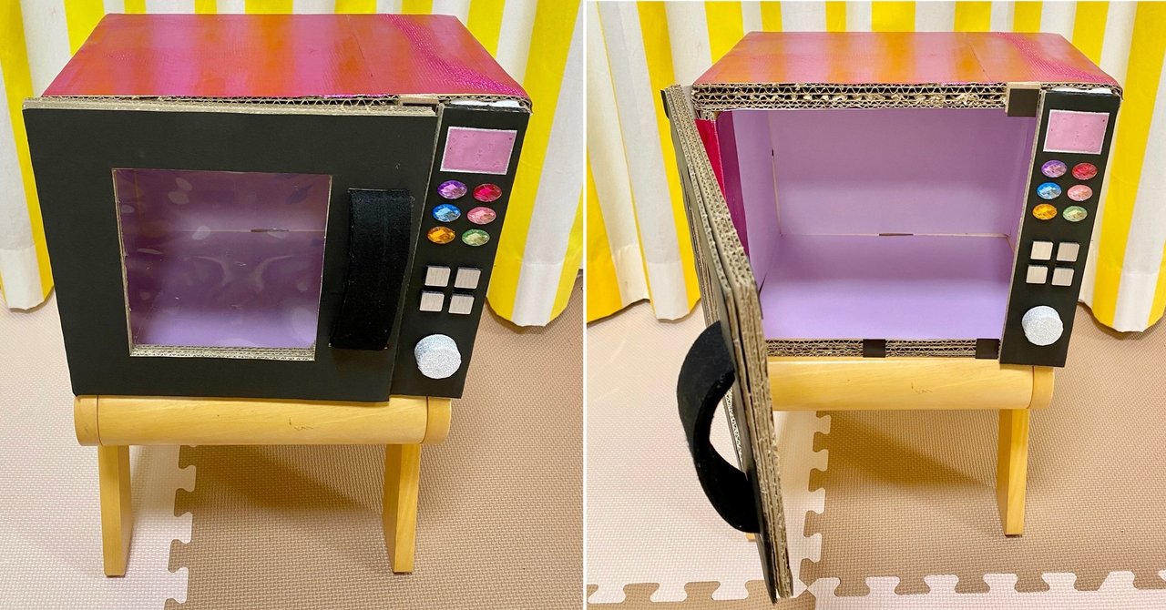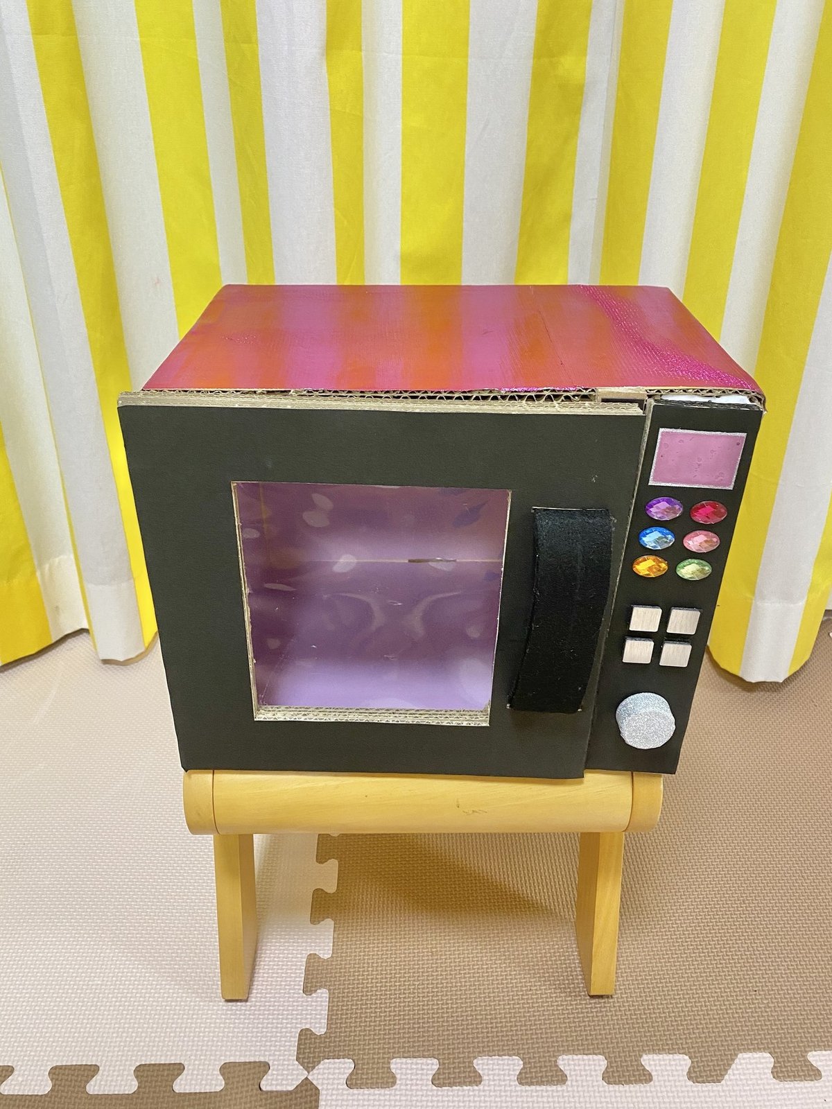 ダンボールでおままごと用の電子レンジを作ってみた。ひろみらくる。