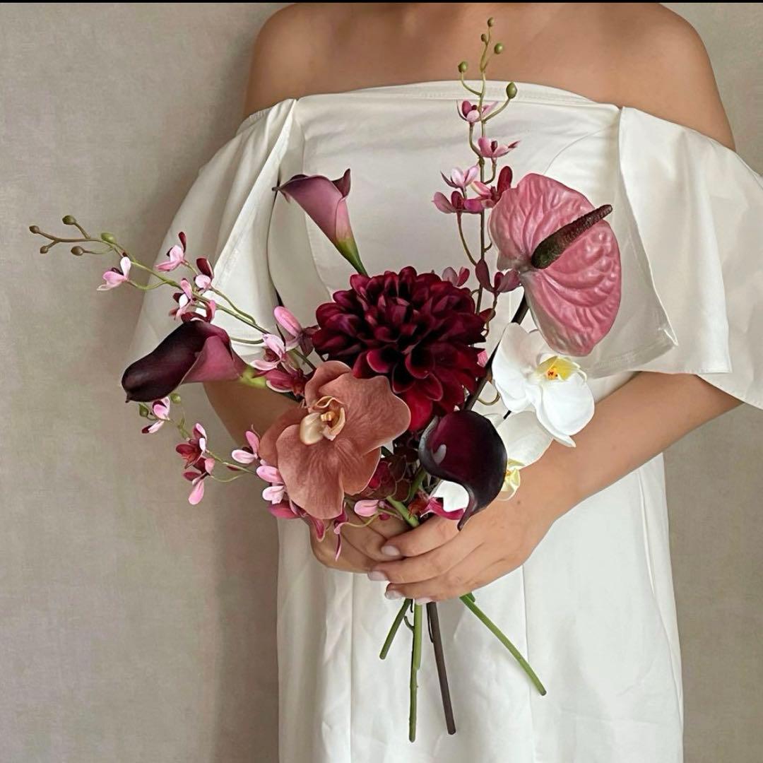 ウェディングブーケ 前撮りブーケ アーティフィシャルフラワー 個性的ブーケ。