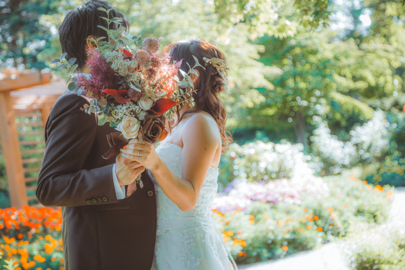 ウェディング ブーケ 結婚式 前撮り ウェディング前撮り ブーケ顔隠しフォトウェディング。