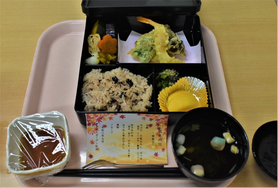 敬老の日のお食事を提供しました - 医療法人相生会 新吉塚病院 - 介護老人保健施設 光。