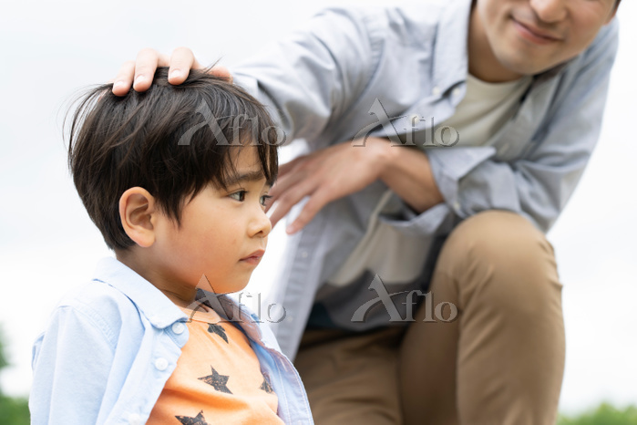 男性の頭を撫でる女性 24025000803 の写真・イラスト素材アマナイメージズ。