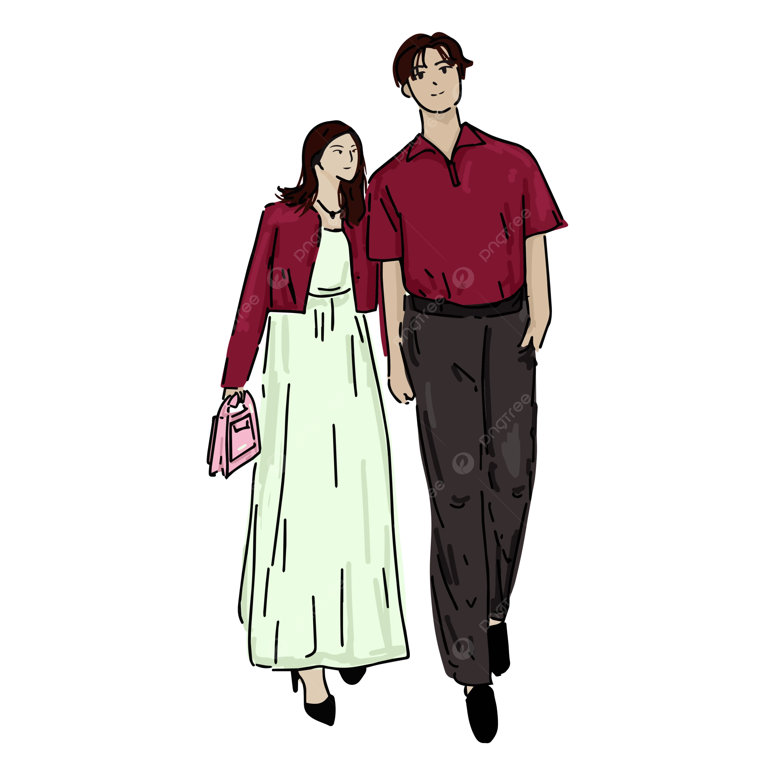 手をつないで飛んでかわいい漫画のカップル イラストPSD 無料ダウンロード - Pikbest。