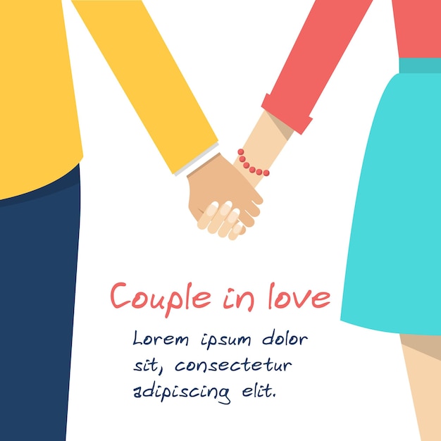 手をつなぐカップル女性と男性の手を一緒に愛のカップルベクトルイラストフラットデザインPremiumベクトル素材。