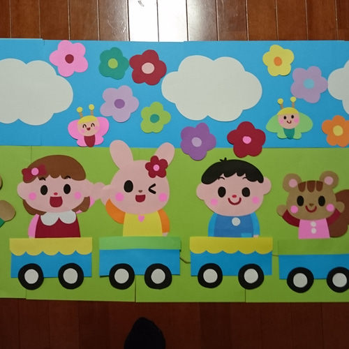 電車壁面 進級 入園 卒園壁面 壁面飾り 画用紙&折り紙で簡単工作♪。