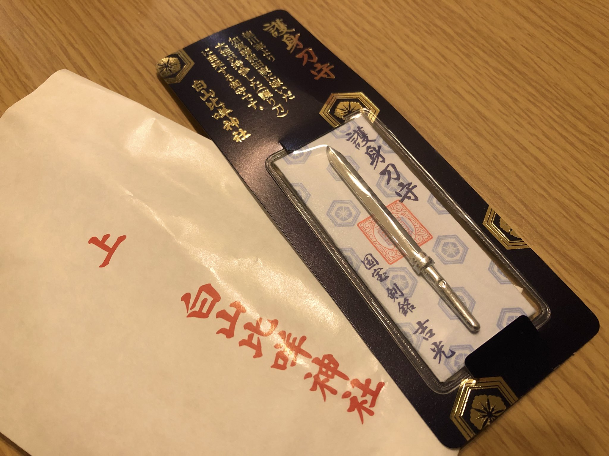 mu617 on X: "石川県白山比咩神社のオリジナルの 白山吉光の護身刀守!!なお白山くんは弊本丸には未実装な模様https:t.co rN8FokGCn7"X。