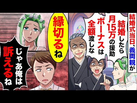 スカッと 結婚式当日、義両親が「結婚したら月15万の援助、ボーナスは全額親の私に渡せ」と結婚式で言ってきた→私「縁切るね」夫「じゃあ 俺はお前を訴える」 スカッとする話アニメ漫画2ch- YouTube。