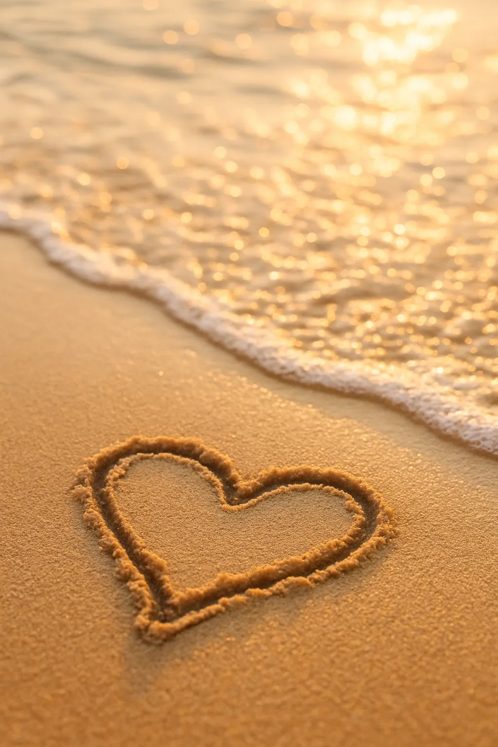 砂浜のハートと寄せる波恋愛運 壁紙 待ち受け画像イラスト・フリー素材なら「シンテリ」。