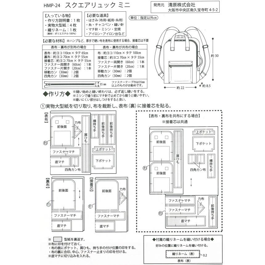楽天市場 パターン 型紙 レシピ 『キッズサイズの スクエアリュックミニ』 : 手芸問屋ウイングス。